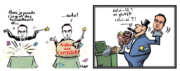 aux travailleurs qu'il faut travailler plus sans dire un mot sur les centaines de milliers de licenciements en cours et sur le naufrage de la politique de l'offre qui a coulé nos finances publiques