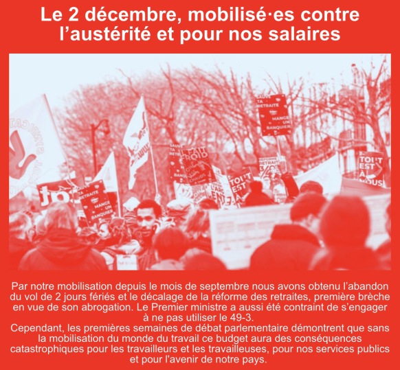 Le 2 décembre est une mobilisation intersyndicale, à l’appel pour l’instant, de la CGT, FSU et Solidaires